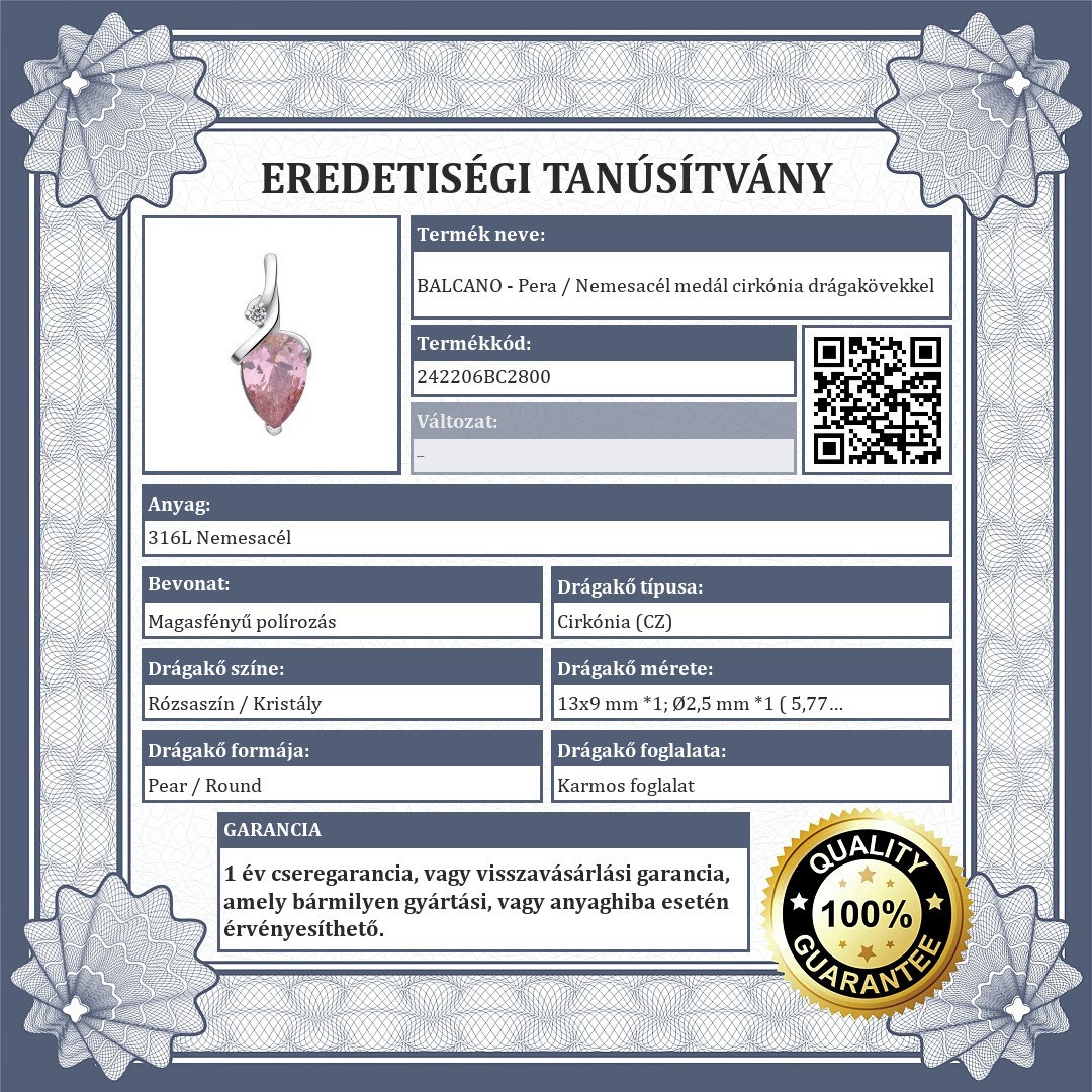 BALCANO - Pera / Nemesacél medál cirkónia drágakövekkel