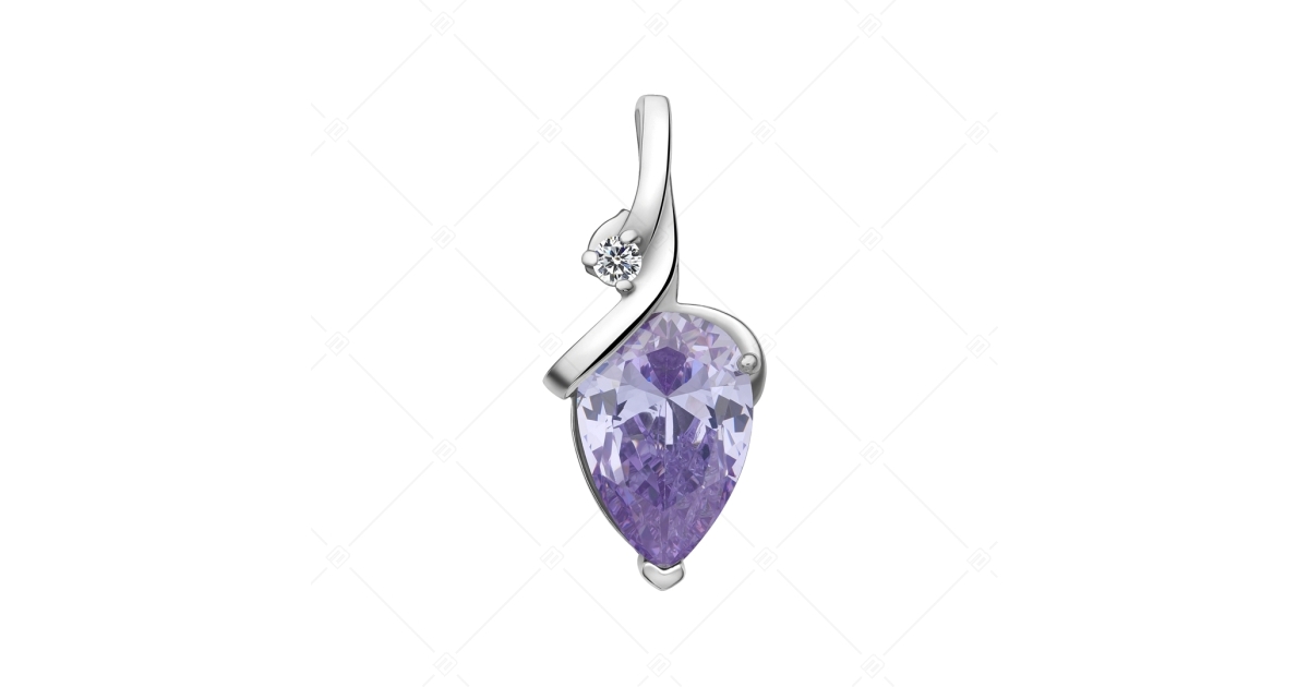 Gyönyörű csillogású orvosi 316L nemesacél medál. Magasfényű polírozással készült, rendkívül tartós nemesacél foglalatot egy kisebb, kerek cirkónia díszíti, amelyet egy nagyobb, csepp alakú levendula színű ékkő tesz még káprázatosabbá.