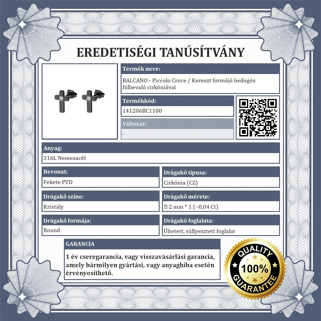 Divatos kereszt alakú, bedugós fülbevaló, közepén egy csillogó, víztiszta cirkónia ékkővel díszítve. Kiváló minőségű antiallergén, 316L rozsdamentes acélból készült, fekete króm PVD bevonattal.