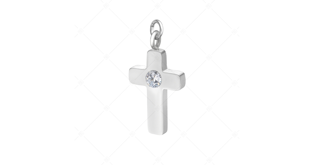 BALCANO - Piccolo Croce / Kereszt formájú nemesacél charm cirkóniával és magasfényű polírozással