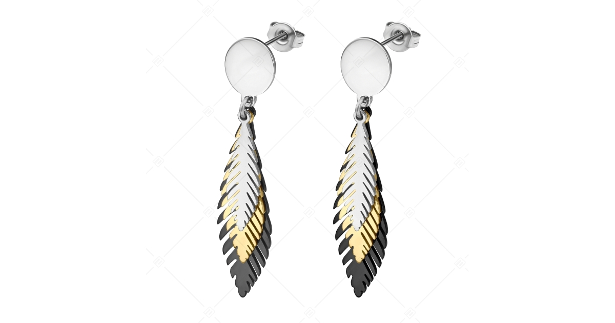 BALCANO - Pluma / Három színű madártoll alakú csüngő nemesacél fülbevaló