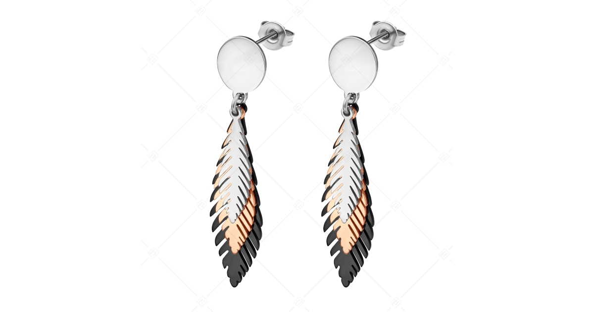 BALCANO - Pluma / Három színű madártoll alakú csüngő nemesacél fülbevaló