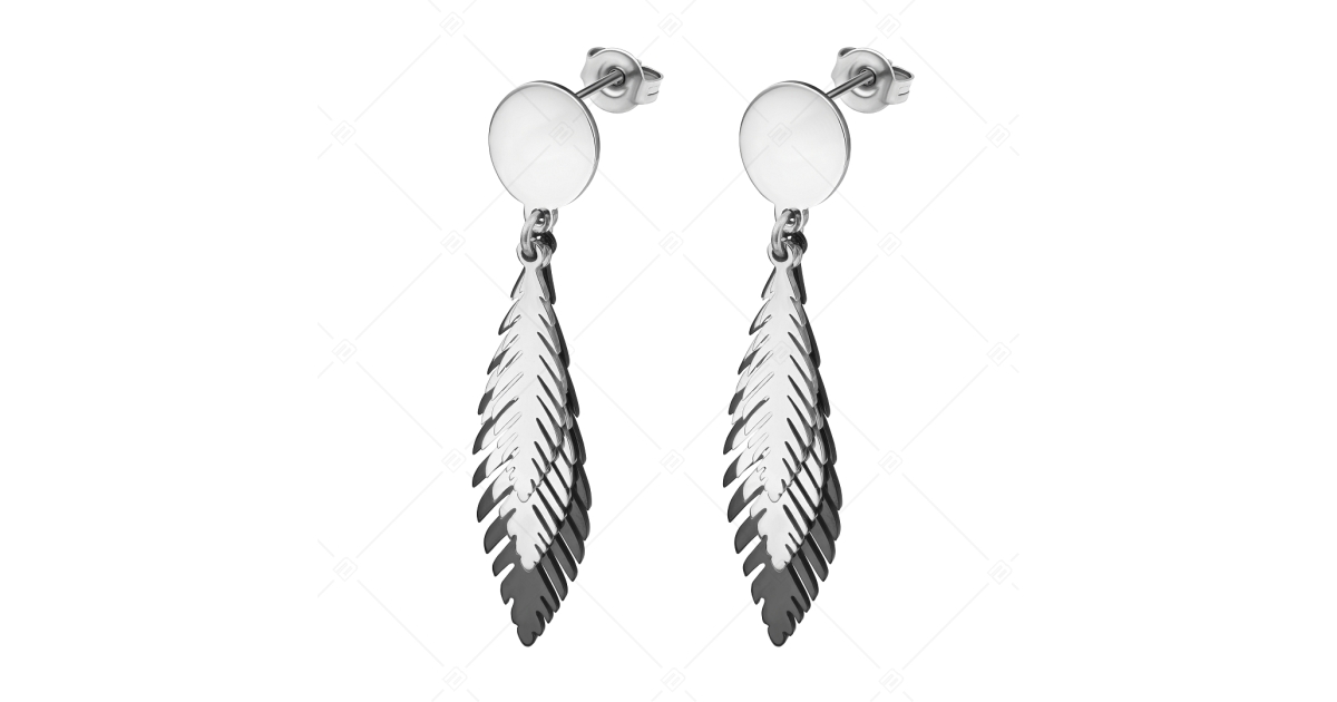BALCANO - Pluma / Három színű madártoll alakú csüngő nemesacél fülbevaló