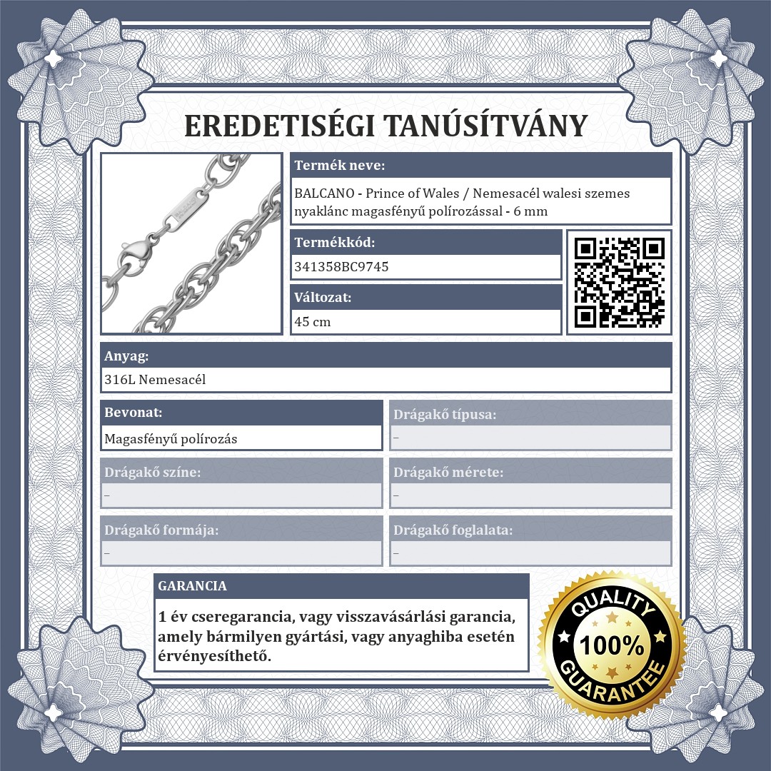 BALCANO - Prince of Wales / Nemesacél walesi szemes nyaklánc magasfényű polírozással - 6 mm