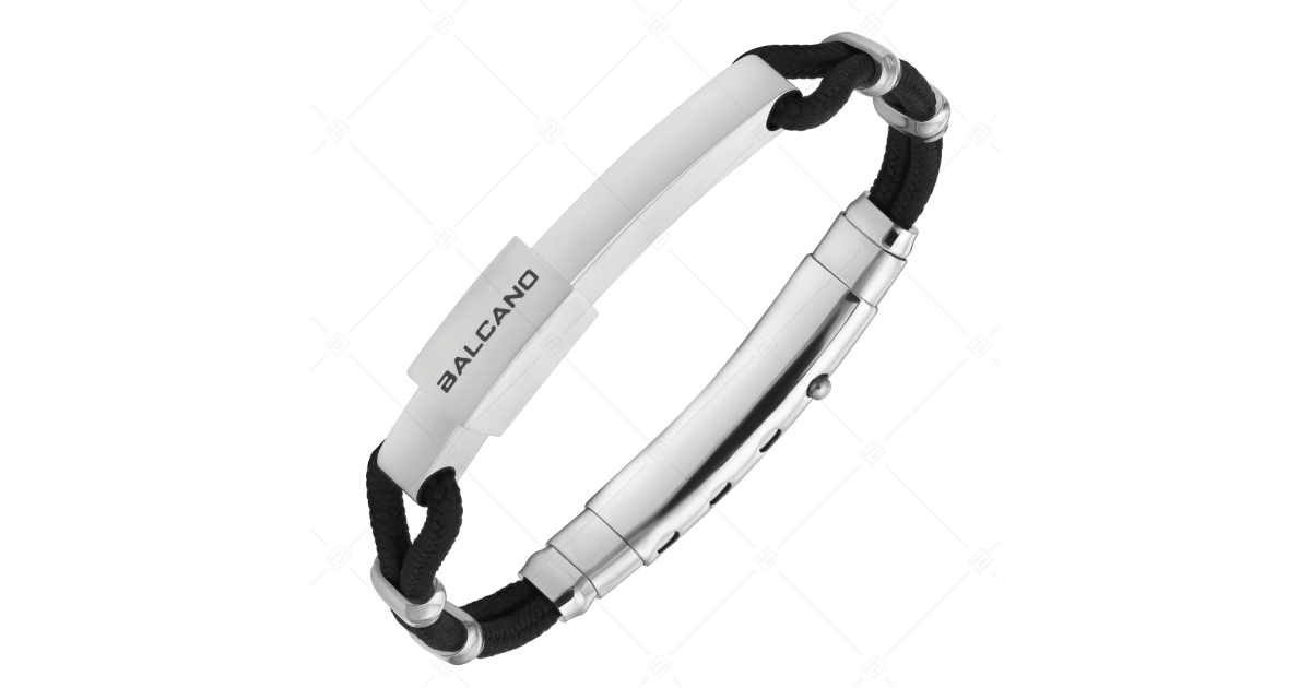 BALCANO - Ricky / Fonott pamut zsinór karkötő egyedi nemesacél fejrésszel és magasfényű polírozással