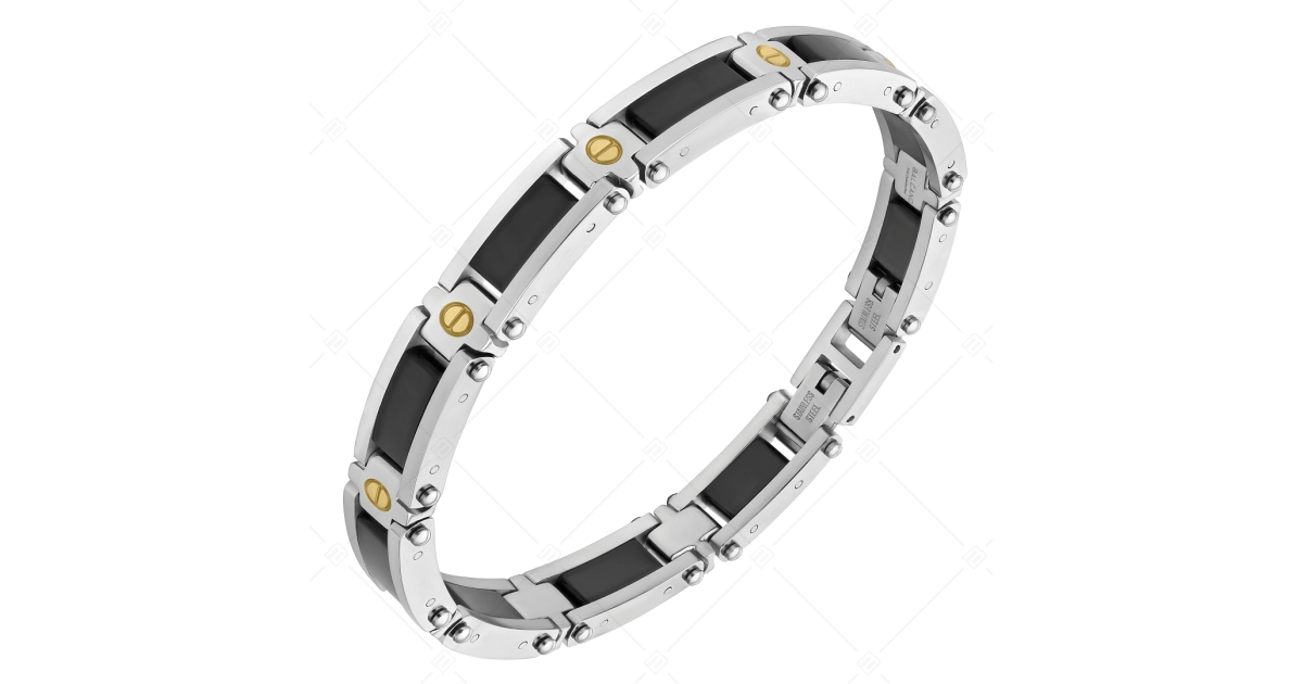 BALCANO - Robin / Nemesacél karkötő fekete PVD bevonatú betétekkel és 18K arany bevonattal