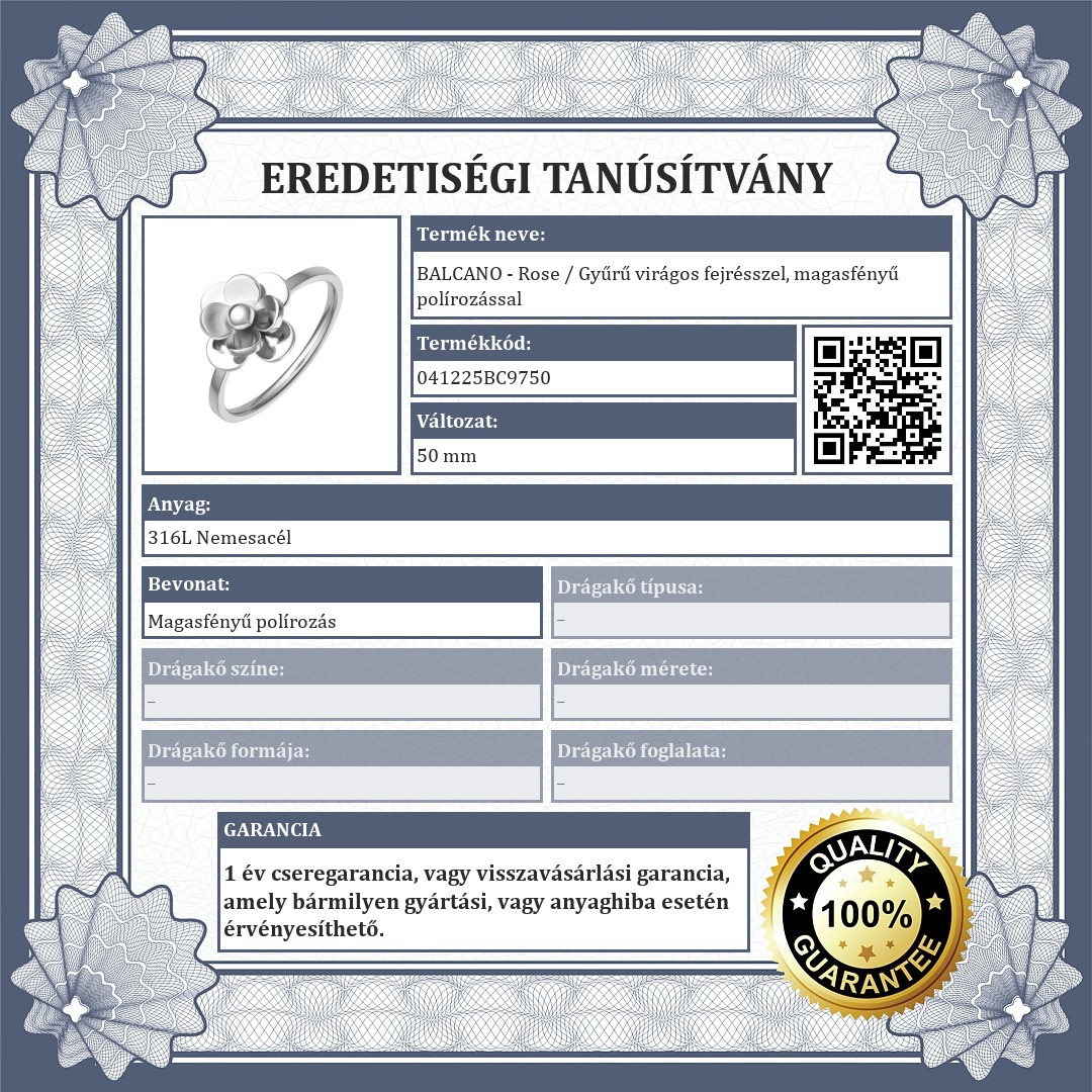 BALCANO - Rose / Gyűrű virágos fejrésszel, magasfényű polírozással