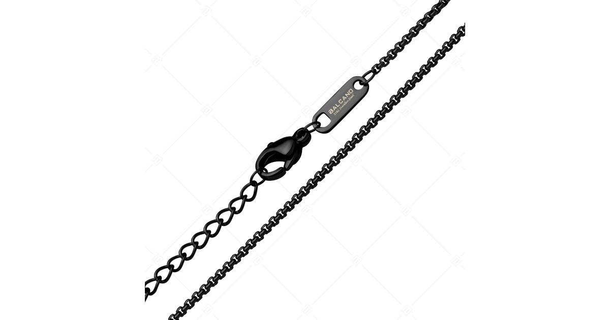 Kiváló minőségű, antiallergén, 316L nemesacél, kerekített velencei kocka lánc típusú nyaklánc, fekete króm PVD bevonattal. Anyagának köszönhetően használat során nem kopik meg fénye, nem rozsdásodik, nem mattul el.