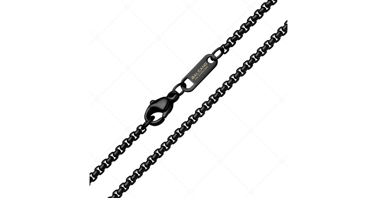 Kiváló minőségű, antiallergén, 316L nemesacél, kerekített velencei kocka lánc típusú nyaklánc, fekete króm PVD bevonattal. Anyagának köszönhetően használat során nem kopik meg fénye, nem rozsdásodik, nem mattul el.