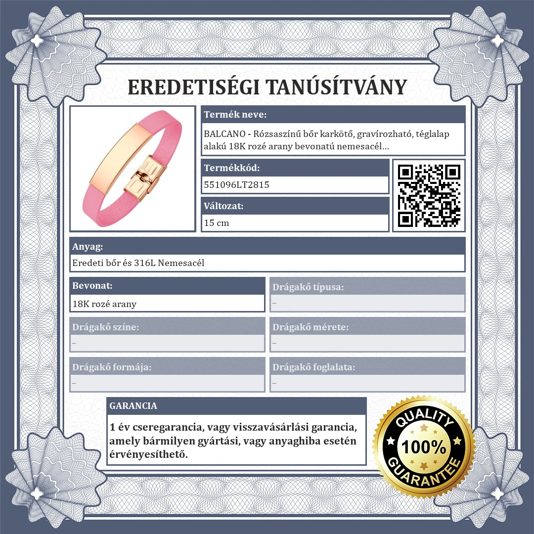 | Anyag színe: | Rozé arany (vörös arany) / Rózsaszín |
