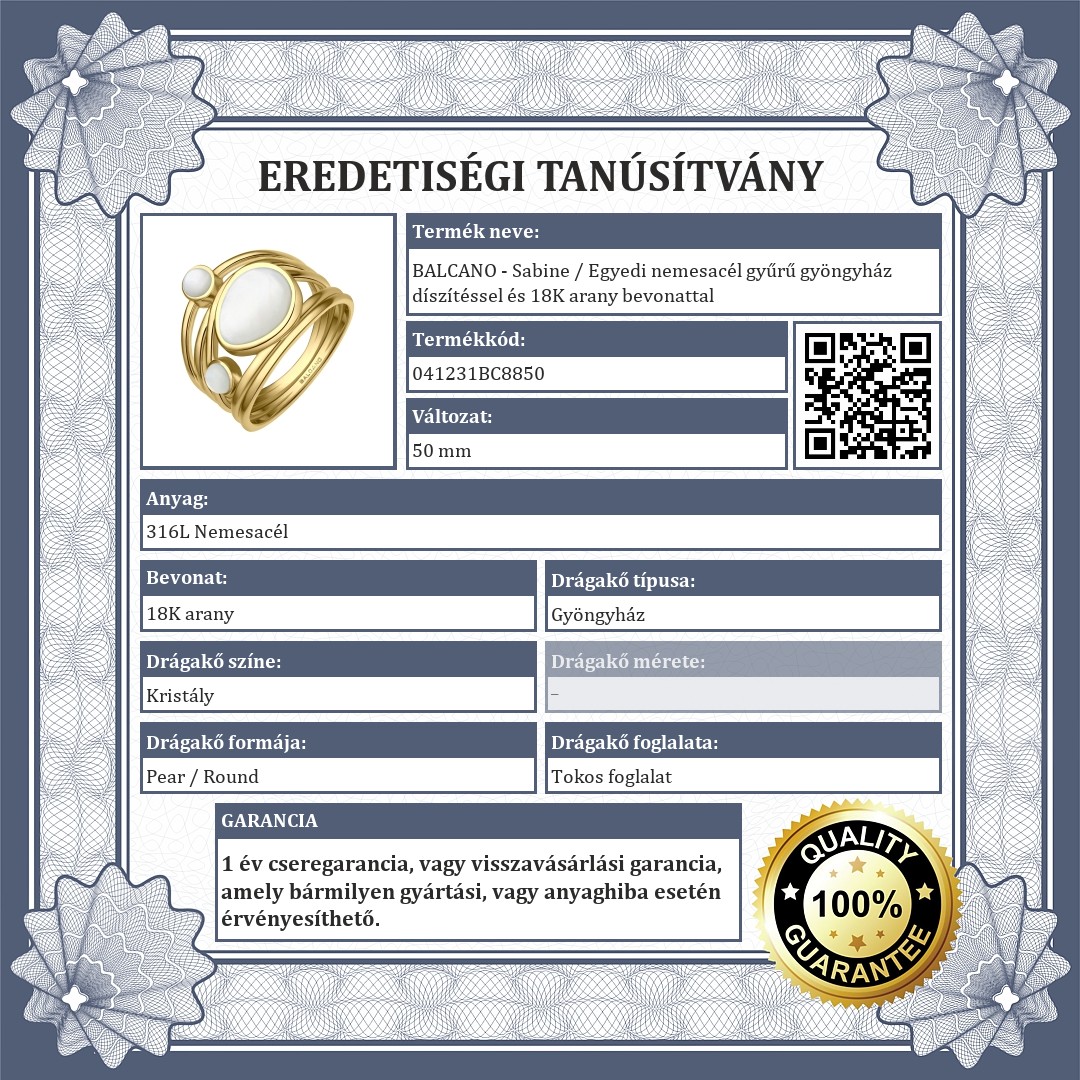 | Bevonat: | 18K arany |