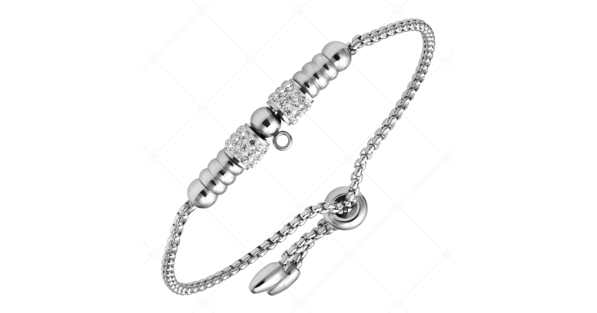 BALCANO - Samantha / Nemesacél lánc karkötő magasfényű polírozással, kristály hengerekkel, és charm karikával