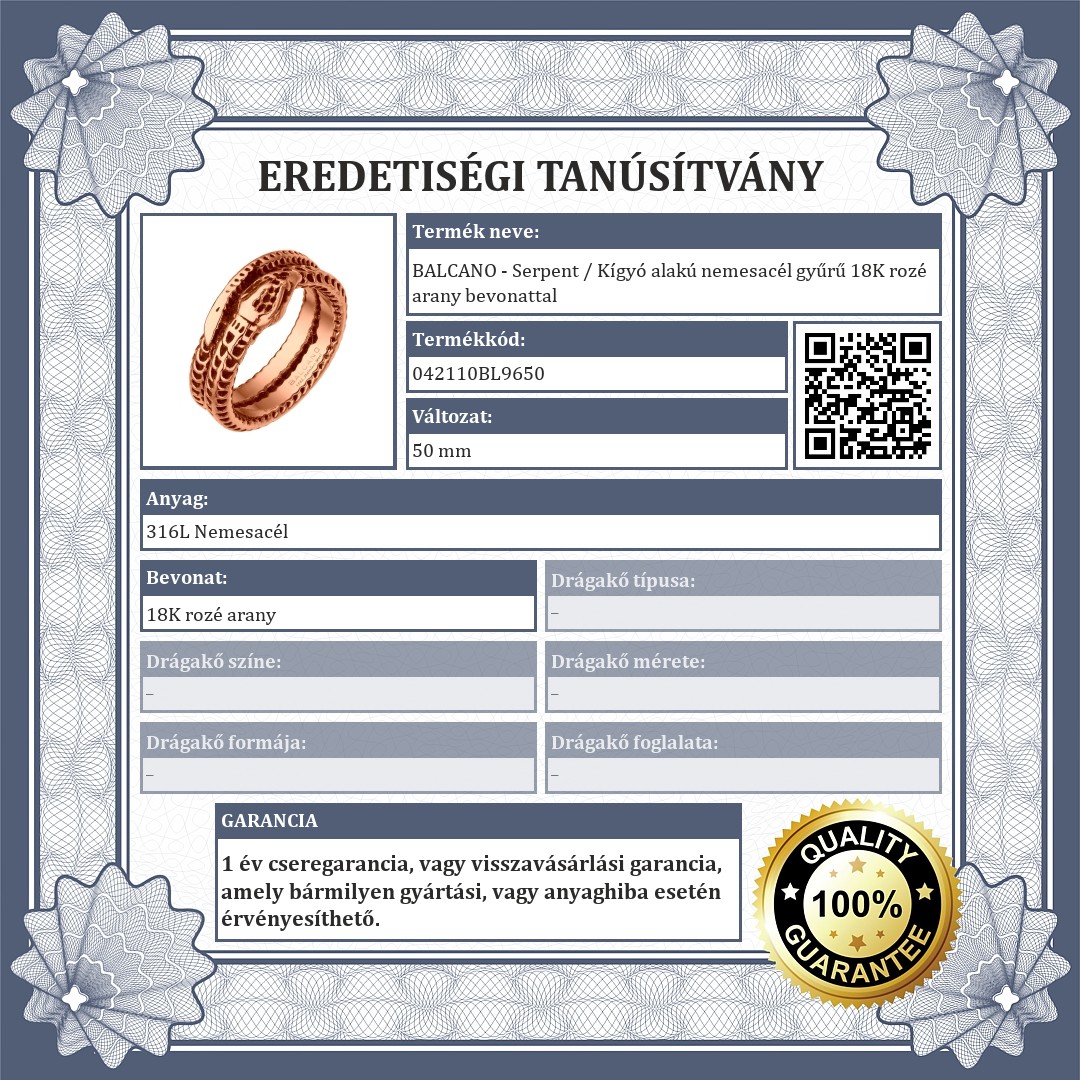 BALCANO - Serpent / Kígyó alakú nemesacél gyűrű 18K rozé arany bevonattal