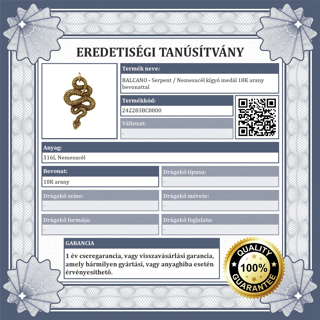 BALCANO - Serpent / Nemesacél kígyó medál 18K arany bevonattal