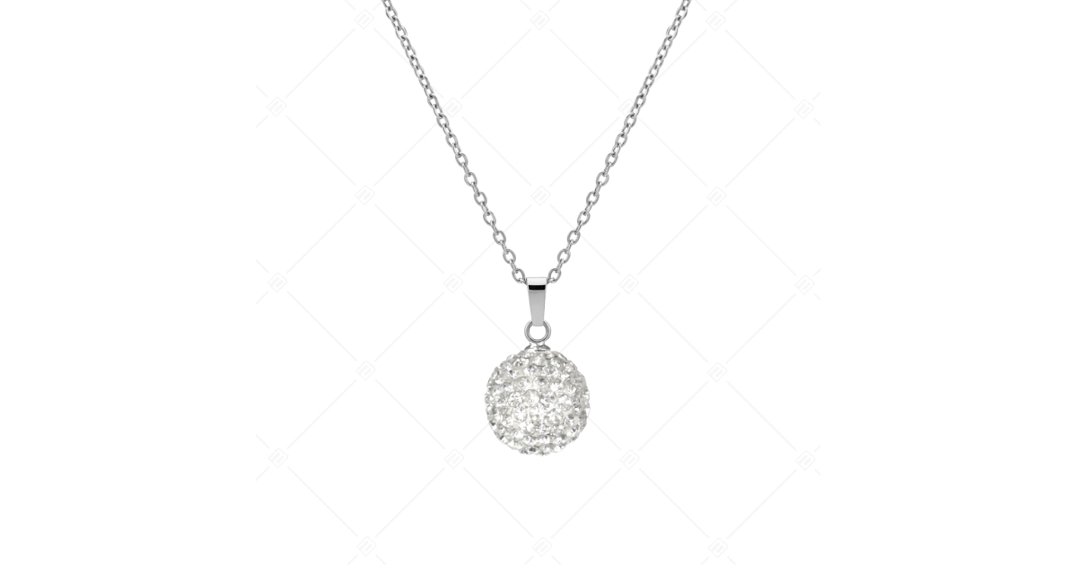 Divatos, ragyogó cseh kristályokkal díszített gömb medál lapított anker nyaklánccal. 316L orvosi, antiallergén nemesacél ékszer, magasfényű polírozással, biztonságos kapoccsal.