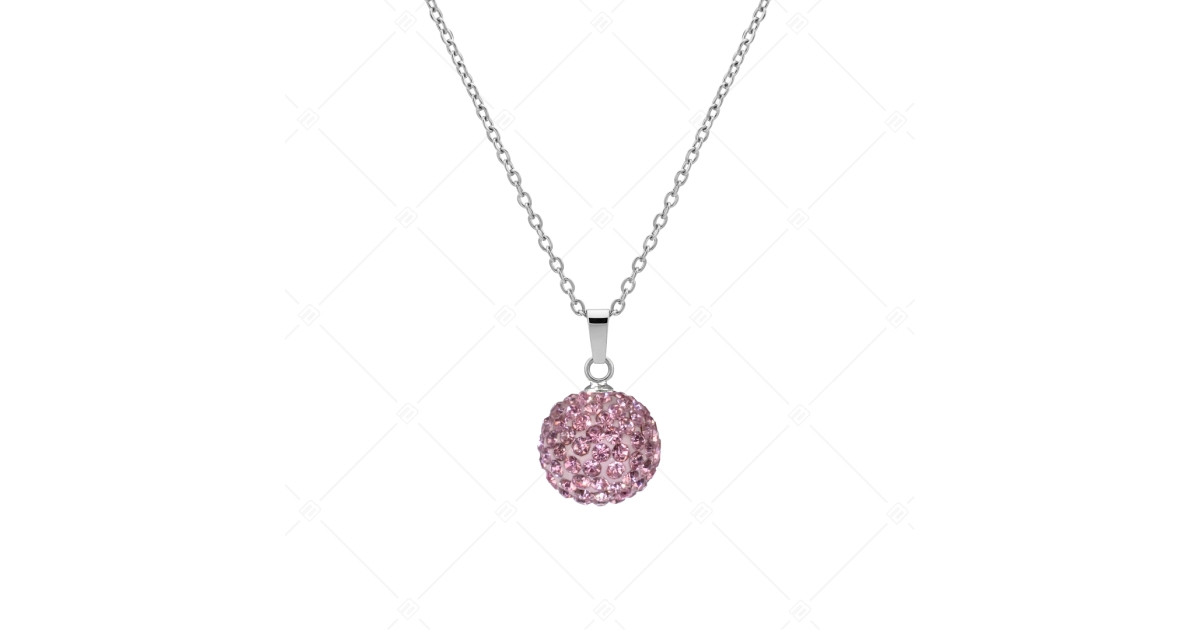 Divatos, ragyogó cseh kristályokkal díszített gömb medál lapított anker nyaklánccal. 316L orvosi, antiallergén nemesacél ékszer, magasfényű polírozással, biztonságos kapoccsal.