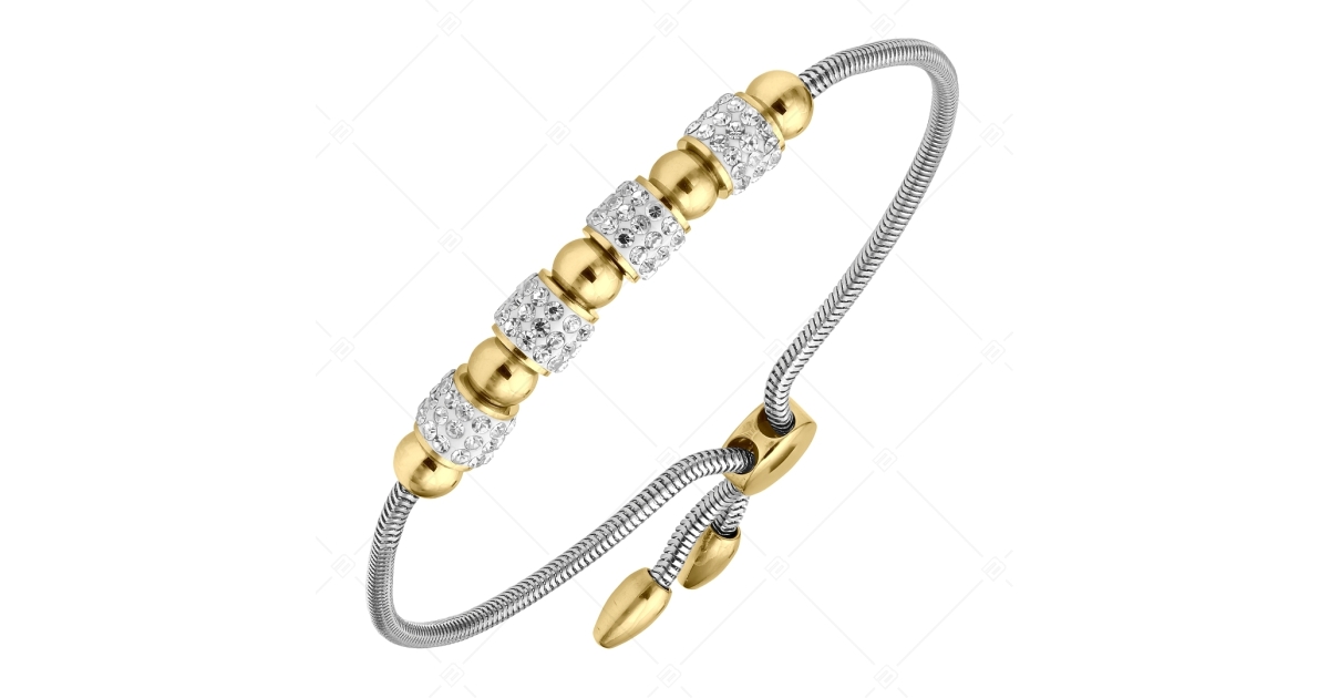 BALCANO - Shelly / Két színű nemesacél kígyólánc karkötő kristály hengerekkel, gömbökkel és 18K arany bevonattal