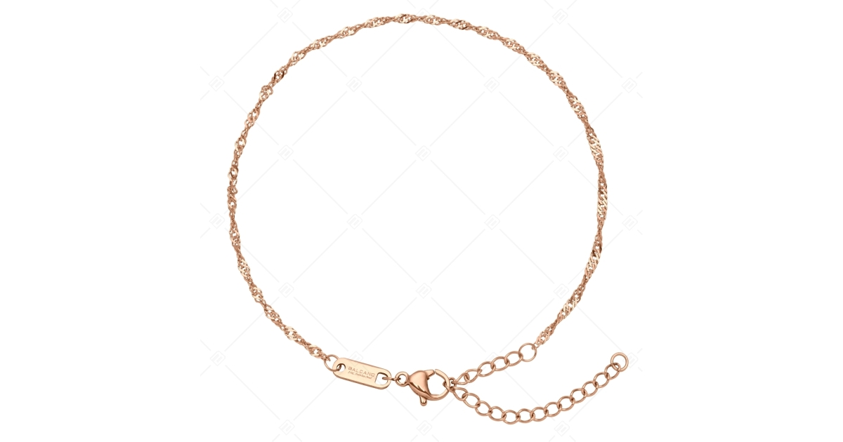BALCANO - Singapore / Nemesacél szingapúri lánc típusú bokalánc 18K rozé arany bevonattal - 1,2 mm