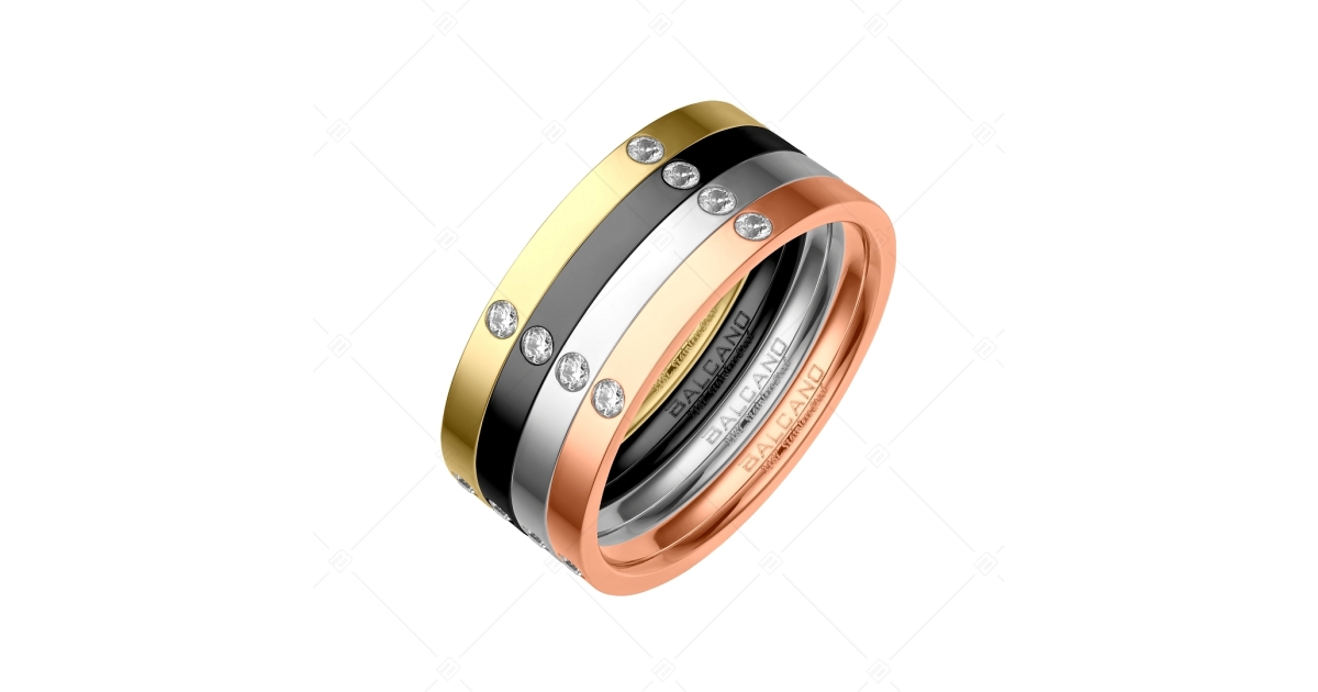 BALCANO - Six / Nemesacél gyűrű cirkónia drágakővel, négy szín egyben