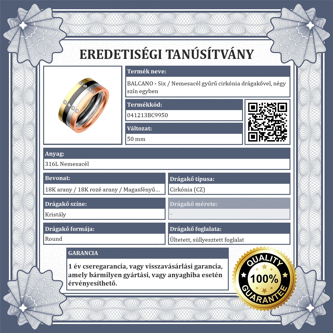 | Anyag színe: | Arany / Rozé arany (vörös arany) / Ezüst / Fekete |