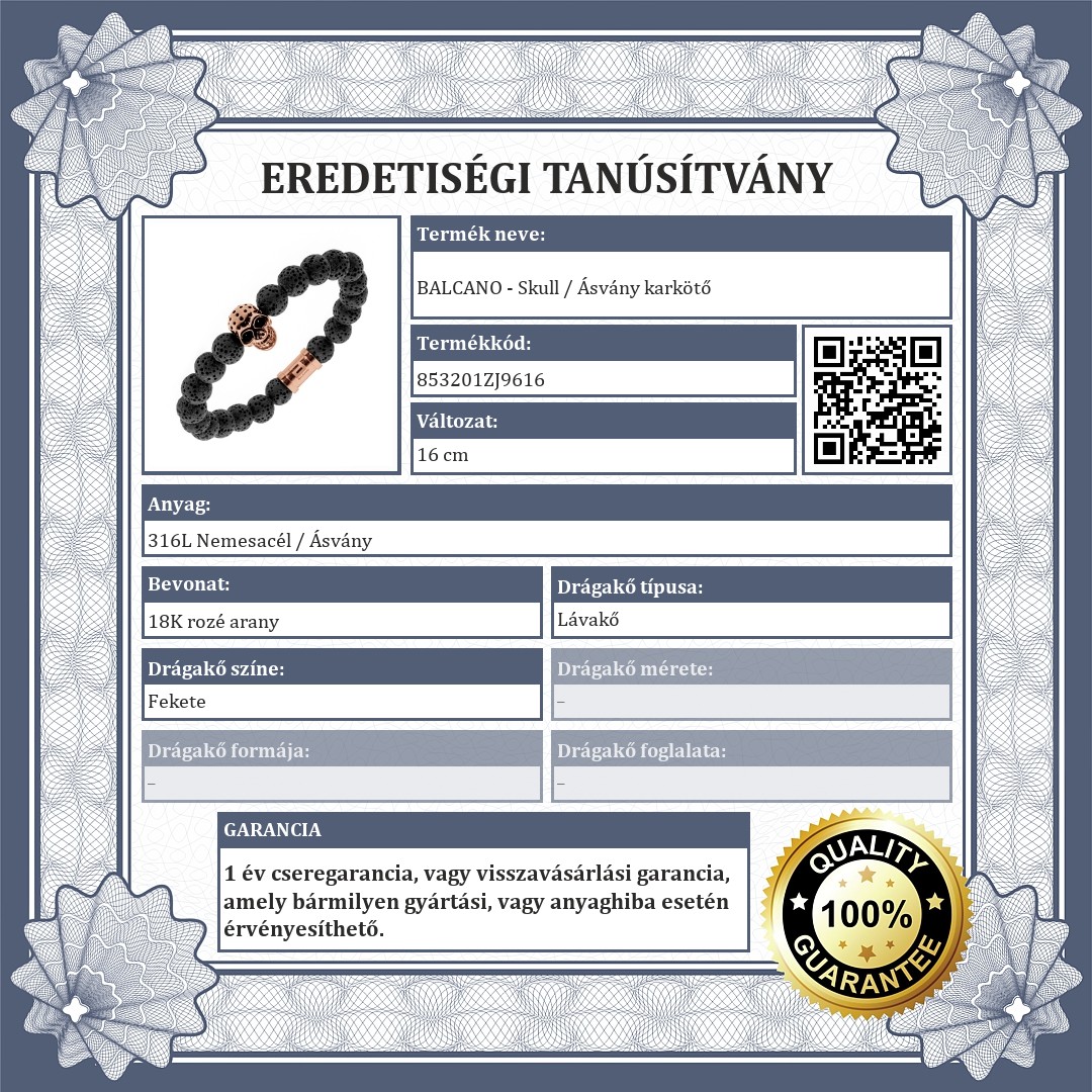 | Anyag színe: | Rozé arany (vörös arany) / Fekete |