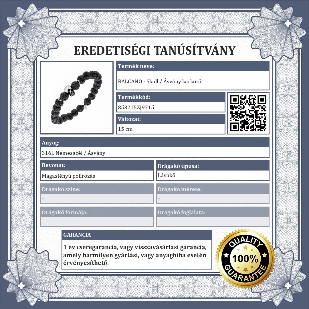 | Anyag: | 316L Nemesacél / Ásvány |