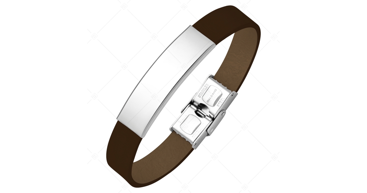 BALCANO - Sötétbarna színű bőr karkötő, gravírozható, téglalap alakú nemesacél fejrésszel