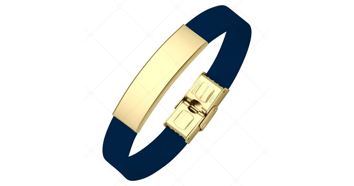 BALCANO - Sötétkék színű bőr karkötő, gravírozható, téglalap alakú 18K arany bevonatú nemesacél fejrésszel
