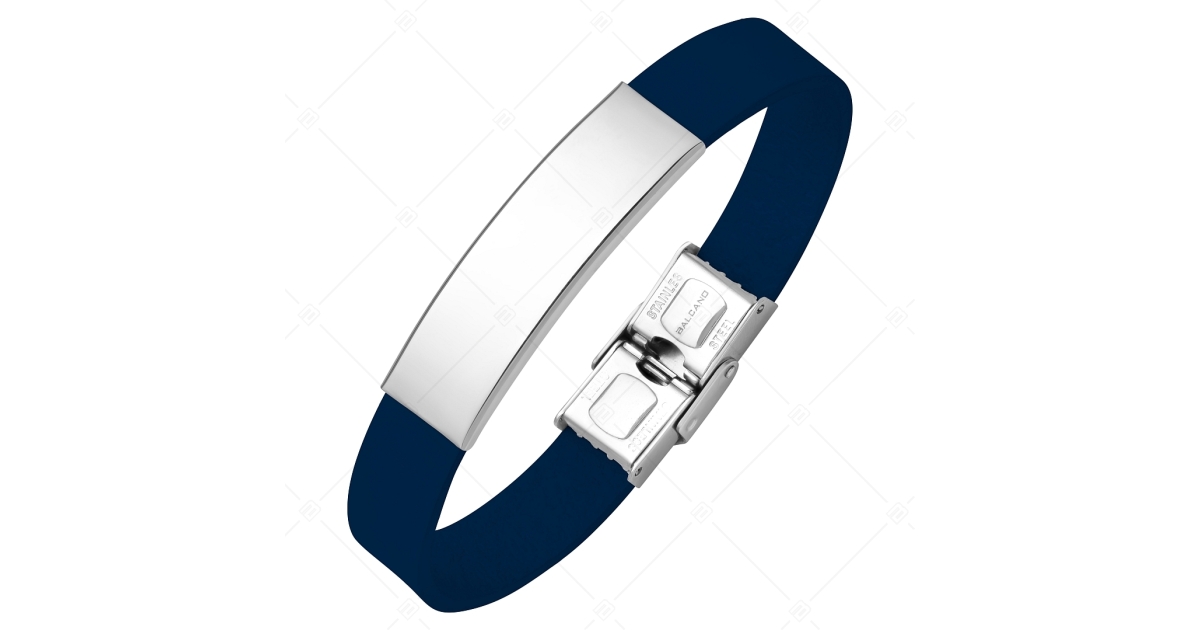 BALCANO - Sötétkék színű bőr karkötő, gravírozható, téglalap alakú nemesacél fejrésszel