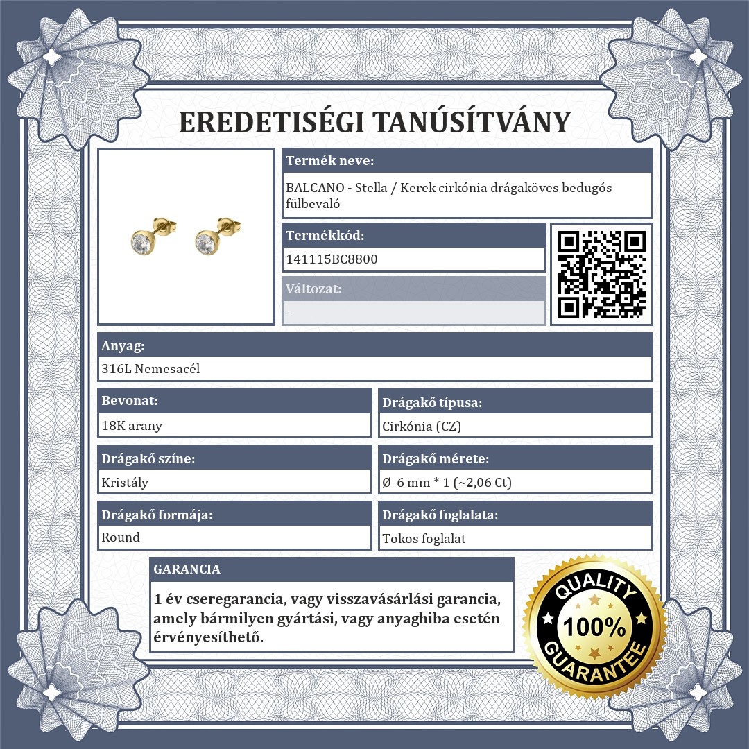 | Bevonat: | 18K arany |