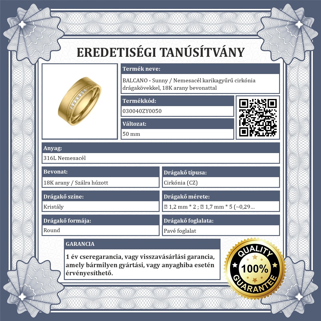 | Bevonat: | 18K arany / Szálra húzott (matt) |