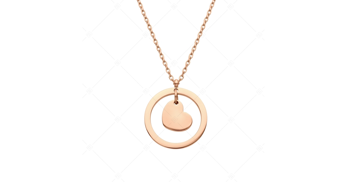 BALCANO - Sweetheart / Nemesacél lapított anker lánc szív a körben medállal 18K rozé arany bevonattal