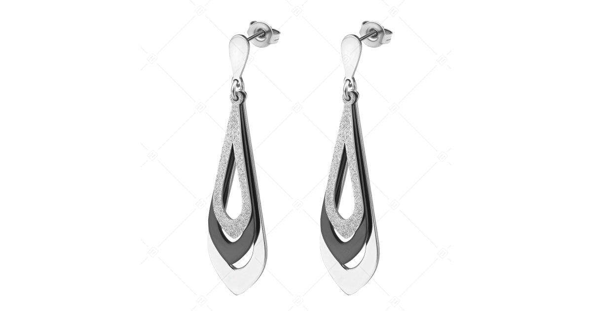 BALCANO - Sydney / Csepp alakú csüngő nemesacél fülbevaló magasfényű polírozással és fekete PVD bevonattal