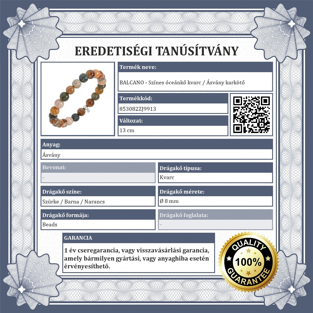 A drágakövek eredetiségét a hivatalos minőségi tanúsítvány bizonyítja.