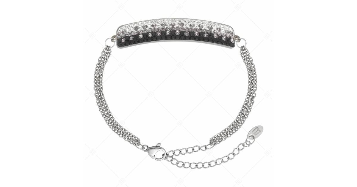 BALCANO - Tesoro / Háromsoros nemesacél lánc karkötő íves kristály fejrésszel