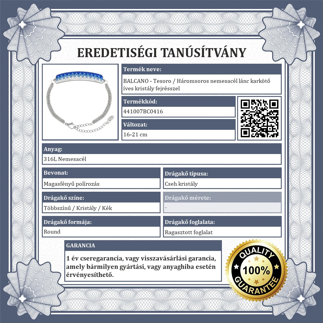 BALCANO - Tesoro / Háromsoros nemesacél lánc karkötő íves kristály fejrésszel