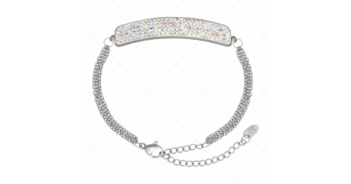BALCANO - Tesoro / Háromsoros nemesacél lánc karkötő íves kristály fejrésszel