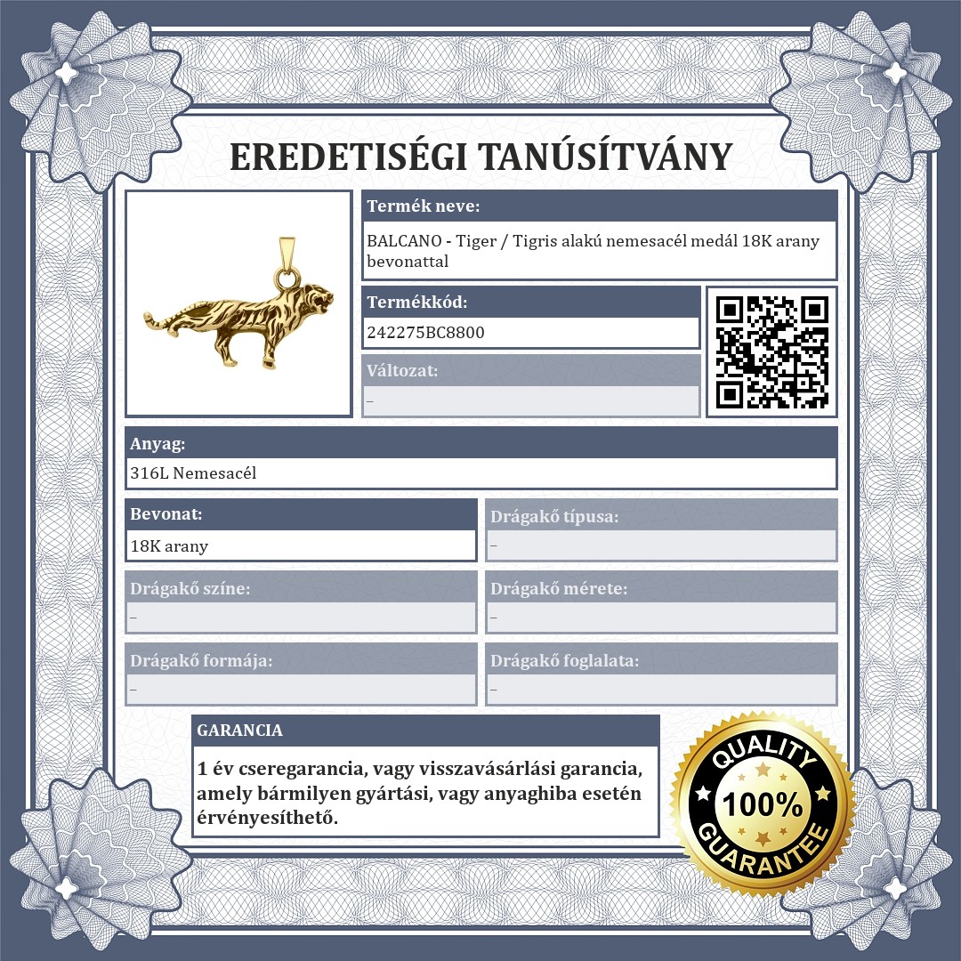 BALCANO - Tiger / Tigris alakú nemesacél medál 18K arany bevonattal