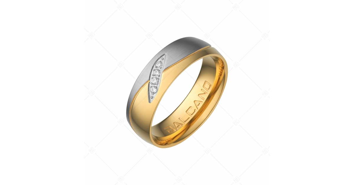 BALCANO - Unda / Nemesacél karikagyűrű 18K arany bevonattal és cirkónia drágakövekkel