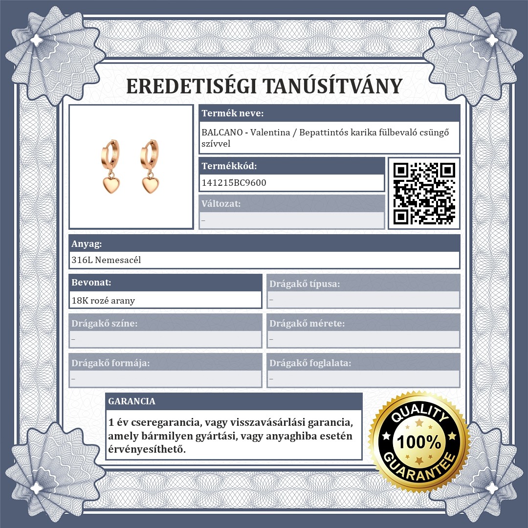| Anyag színe: | Rozé arany (vörös arany) |
