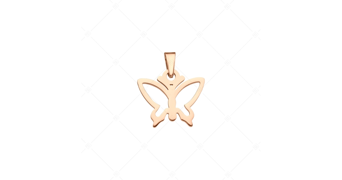 Antiallergén, nemesacél áttört pillangó formájú medál, 18K rozé arany bevonattal.