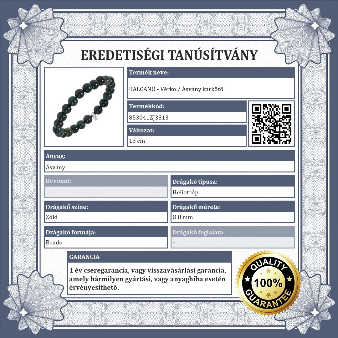 A drágakövek eredetiségét a hivatalos minőségi tanúsítvány bizonyítja.