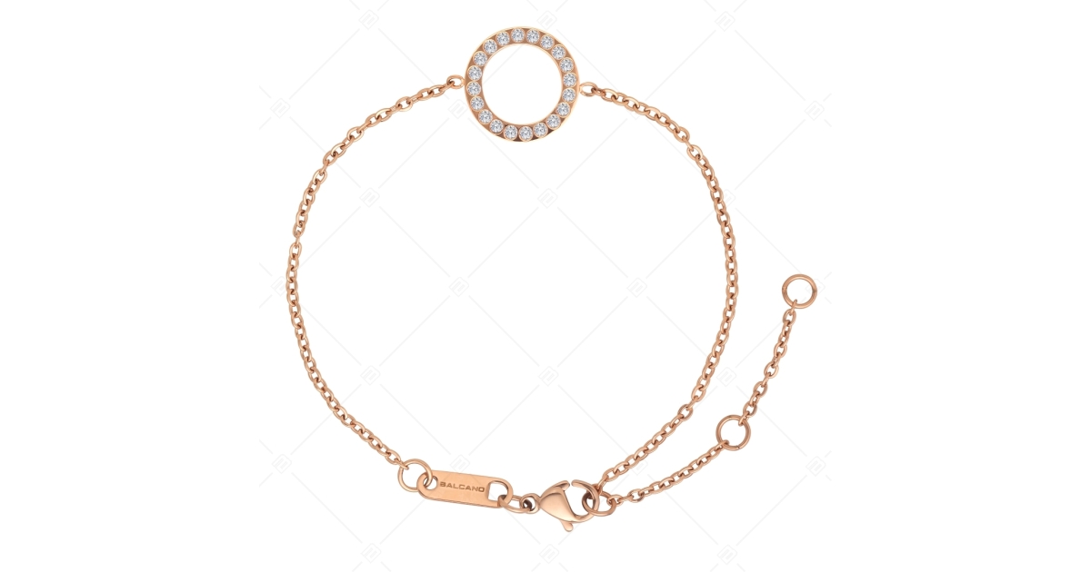BALCANO - Veronic / Nemesacél karkötő kerek cirkónia drágaköves medállal és 18K rozé arany bevonattal