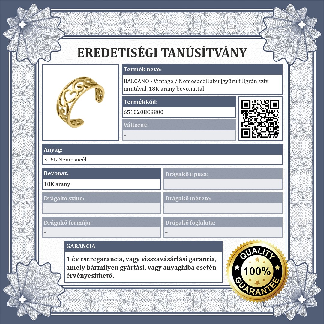 BALCANO - Vintage / Nemesacél lábujjgyűrű filigrán szív mintával, 18K arany bevonattal