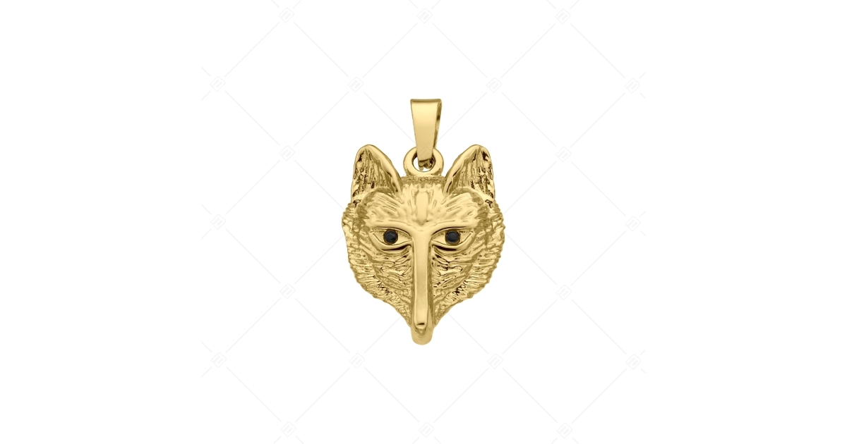 Farkas fej medál 316L orvosi rozsdamenetes nemesacélból 18K arany bevonattal.