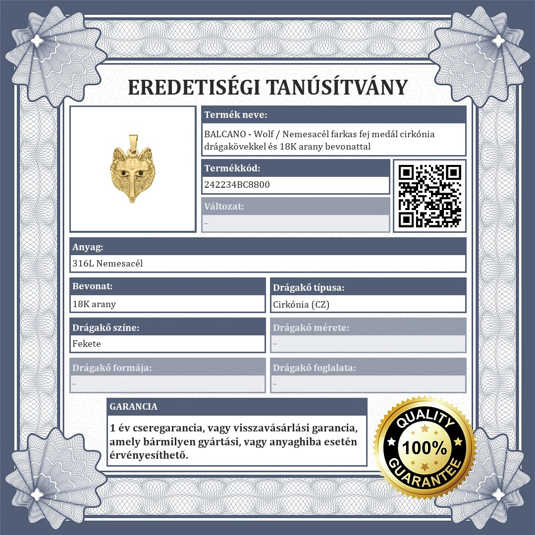 BALCANO - Wolf / Nemesacél farkas fej medál cirkónia drágakövekkel és 18K arany bevonattal