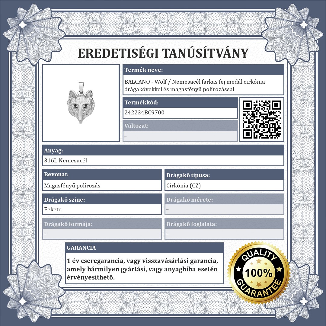 BALCANO - Wolf / Nemesacél farkas fej medál cirkónia drágakövekkel és magasfényű polírozással