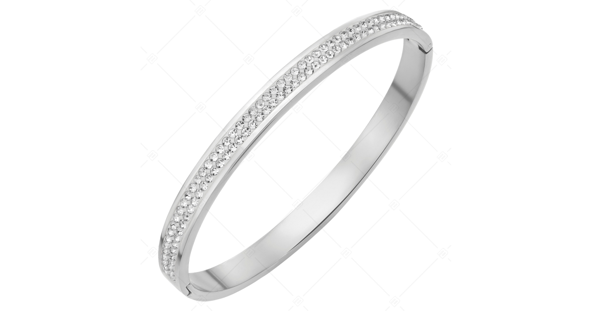 BALCANO - Yvette / Kristályokkal dupla sorban díszített nemesacél karperec magasfényű polírozással
