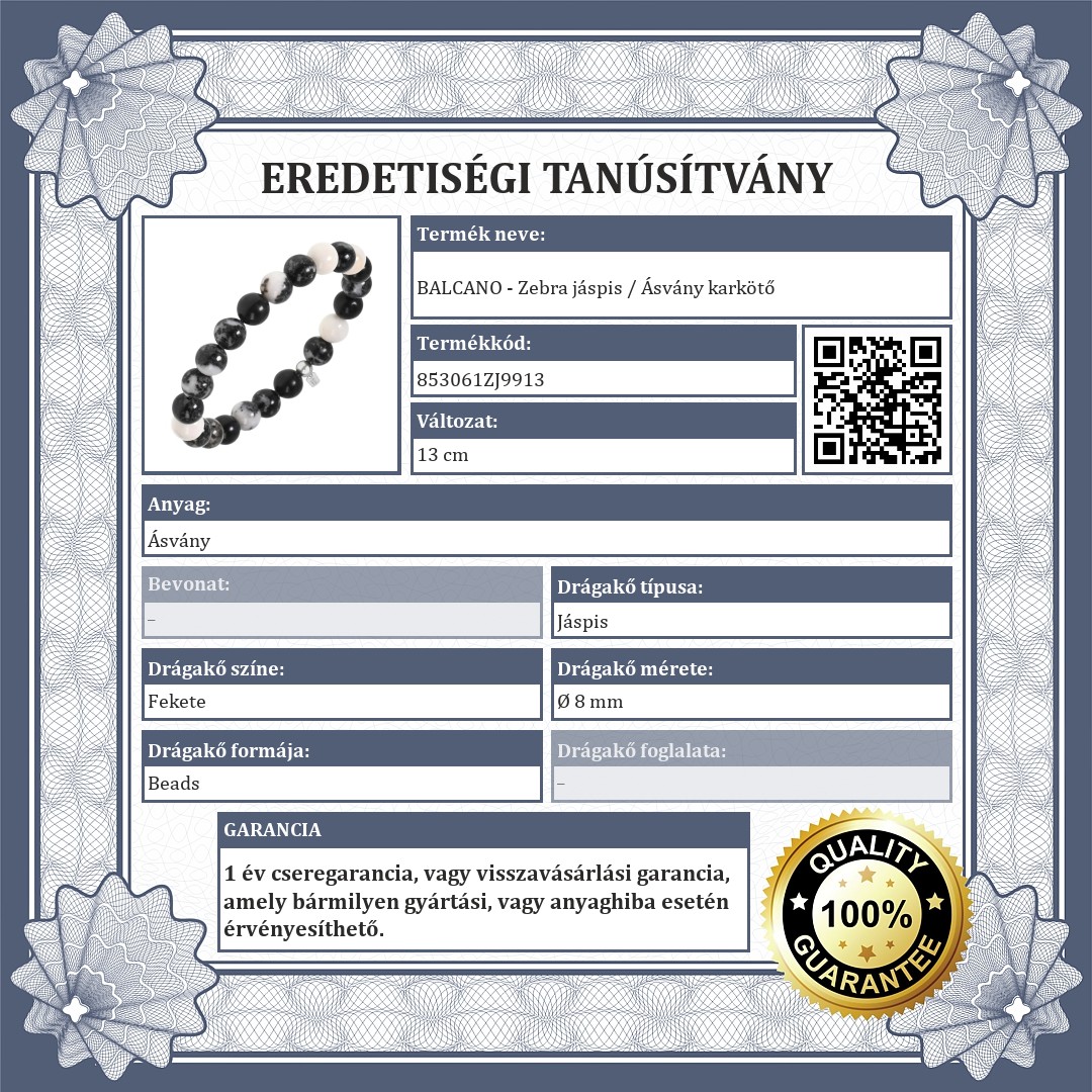 A drágakövek eredetiségét a hivatalos minőségi tanúsítvány bizonyítja.