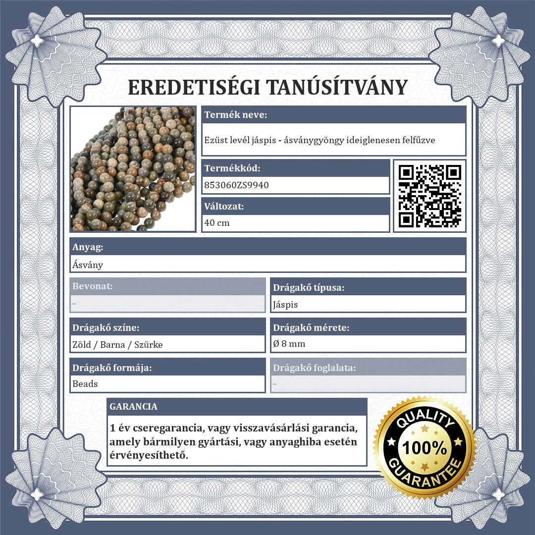 Eredeti ezüst levél jáspis ásványgyöngy.